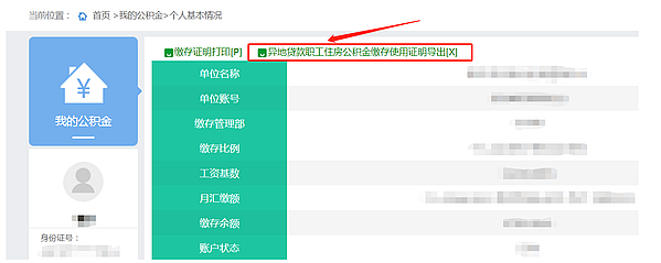 5、點(diǎn)“異地貸款職工住房公積金繳存使用證明導(dǎo)出”