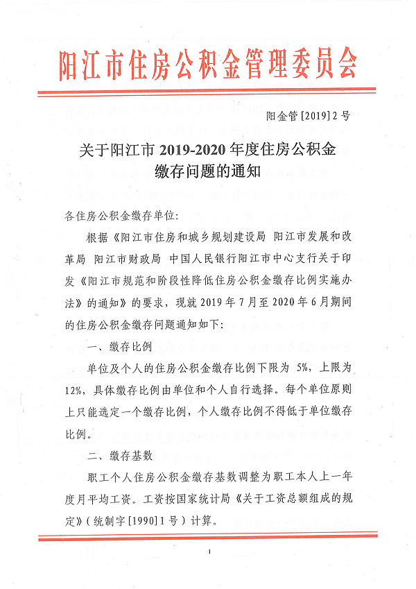 關(guān)于陽(yáng)江市2019-2020年度住房公積金繳存問(wèn)題的通知