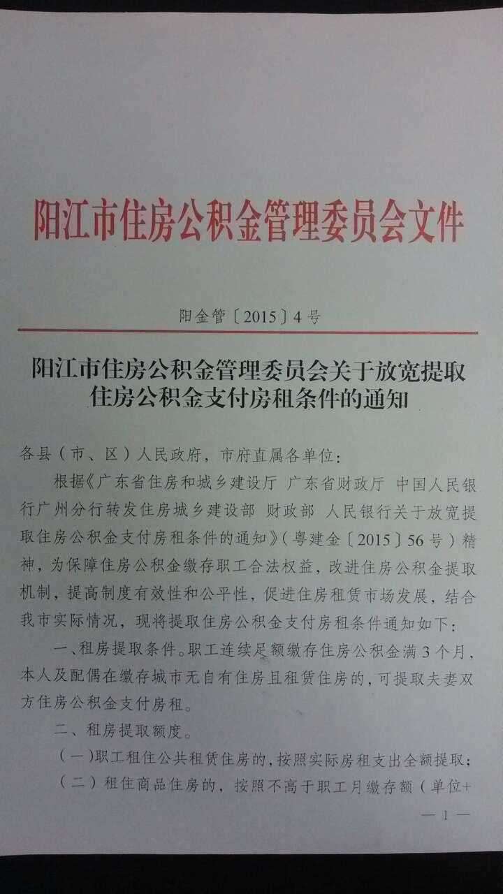 陽江市住房公積金管理委員會(huì)關(guān)于放寬提取住房公積金支付房租條件的通知